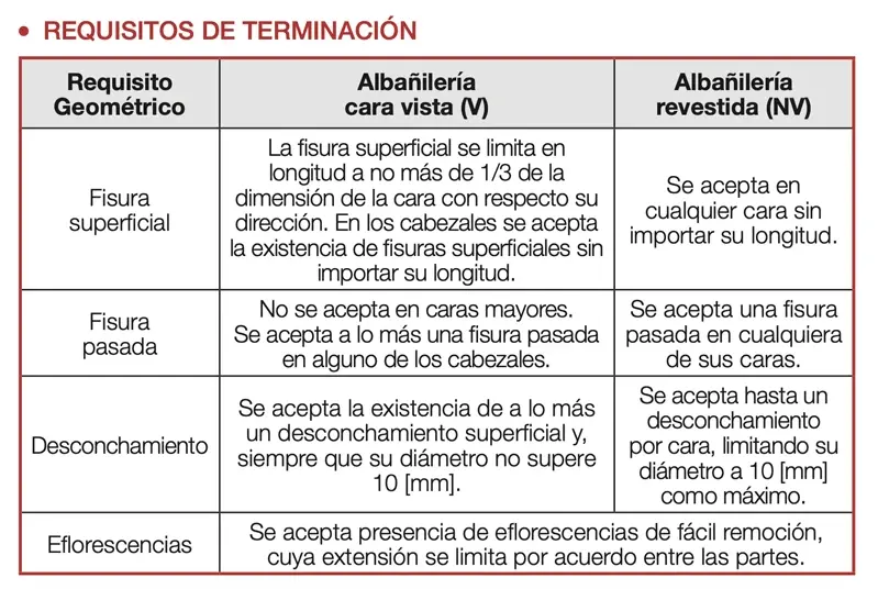 Para la recepción de ladrillos en obra, es importante conocer los requisitos y tolerancias de forma y terminación que la norma chilena NCh 169:2001 Construcción – Ladrillos Cerámicos – establece.