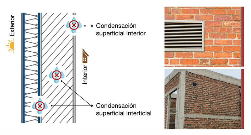 - Evitar el uso de tratamientos superficiales que generen una barrera o película sobre la superficie que impida el paso del vapor de agua desde el interior hacia el exterior de la vivienda.